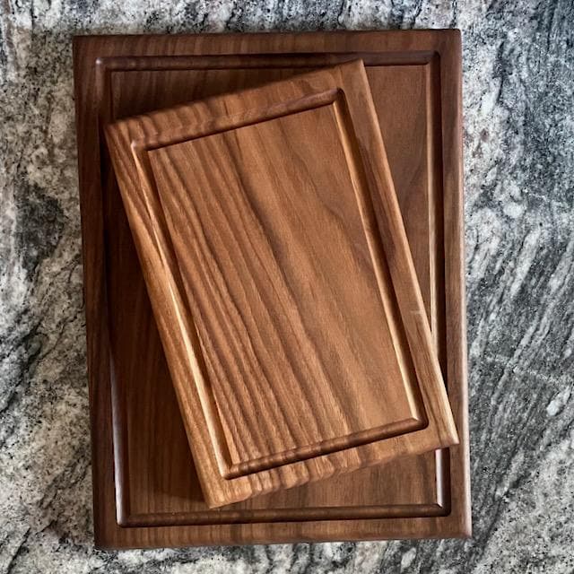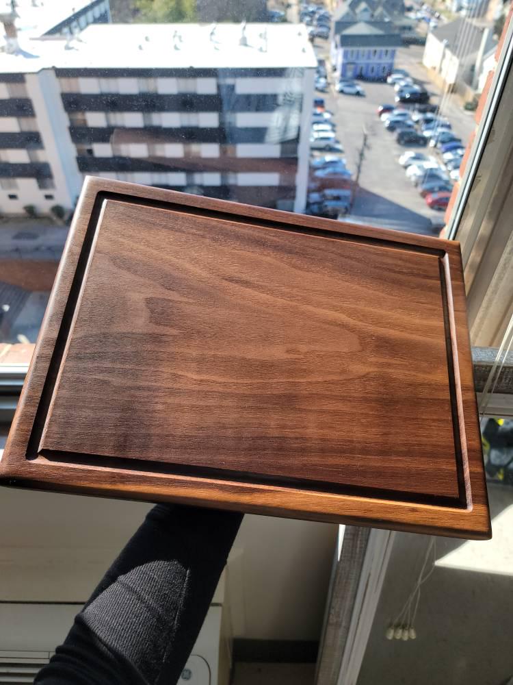 Each board is made from the highest quality, hand-picked hardwood. Our wood chopping boards are crafted with a juice groove to catch messes while you are cutting. If you want your board without a juice groove, simply include that request in your order. Each board is made to order.